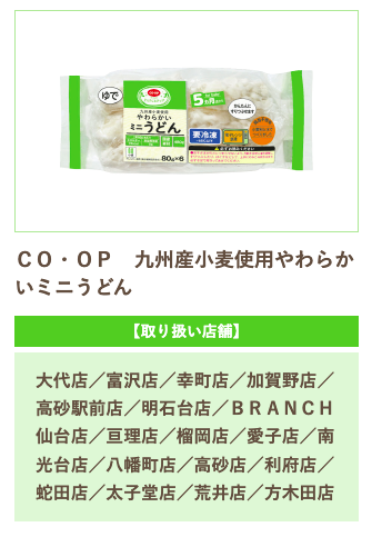 最も多くの店舗で取り扱いがあったのは、「九州産小麦使用やわらかいミニうどん」です。