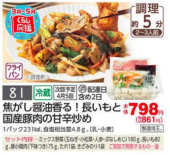 | 冷蔵 | 28品目 | 798円〜1,220円 | 2日 | 2人前〜4人前 | 5分〜10分 |