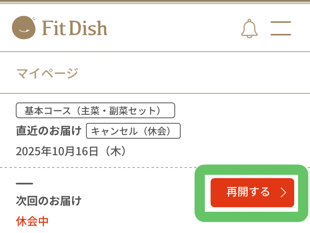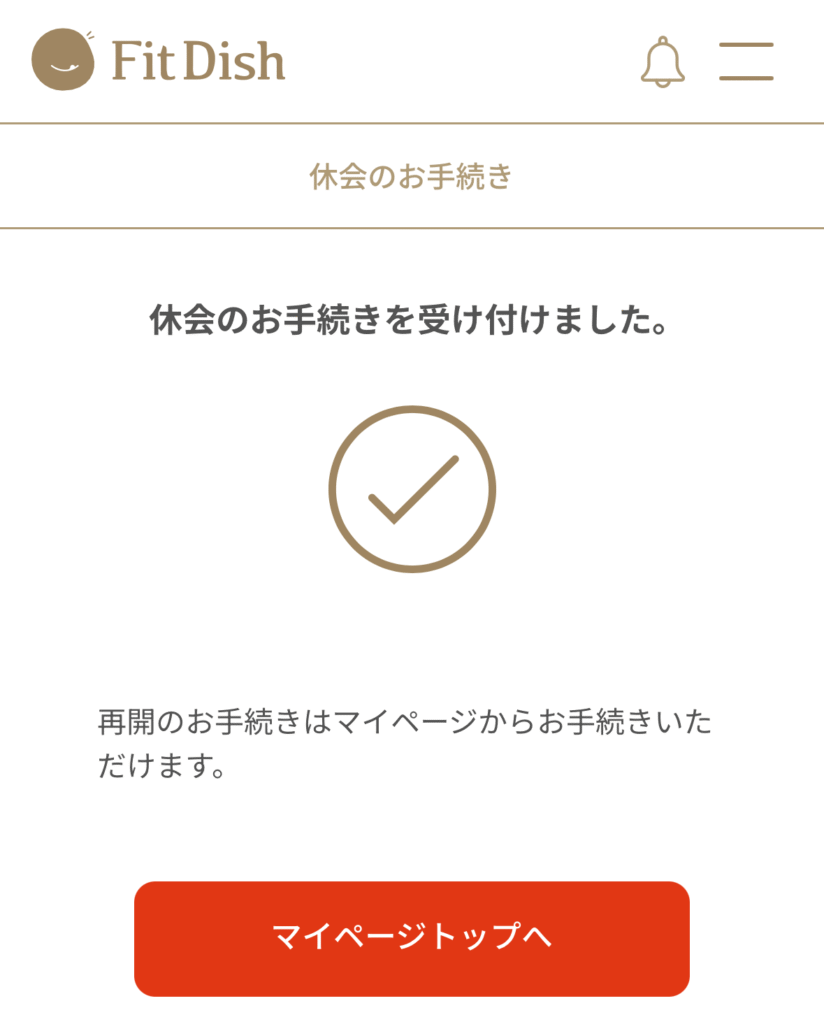 フィットディッシュはマイページから簡単に休止・解約の手続きができます。