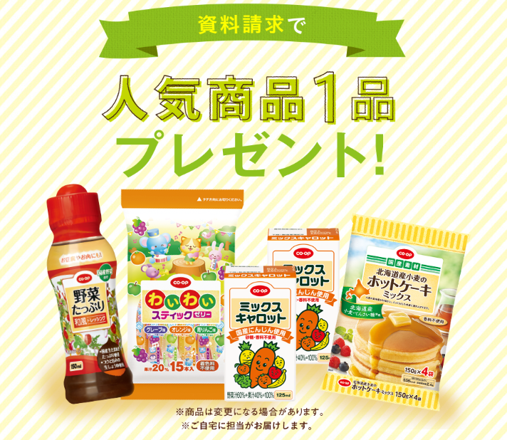 それだけではありません。担当お届けを選ぶと「おうちコープの人気商品」がもらえます。