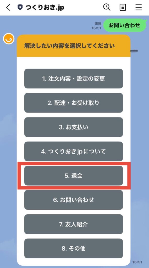 つくりおき.jpを解約したいときは、LINEから簡単に退会の手続きができます。