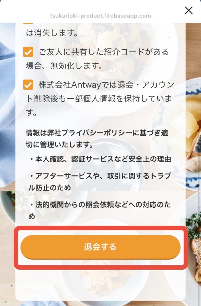 - 運営会社(株式会社Antway)は退会・アカウント削除後も一部個人情報を保持する